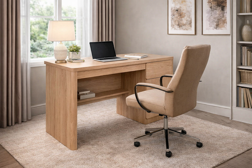 View full detailsThe Maeve Oak Office Desk combines clean lines with practical design, making it an ideal choice for both home offices and study spaces. Finished in...