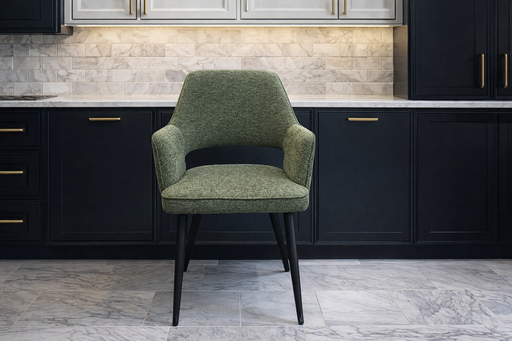 View full detailsThe Ted Dining Chair is a contemporary statement piece designed to elevate any modern dining space. Upholstered in a rich forest green fab...